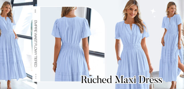 Product Name & Type | BTFBM Women’s Summer 2025 Casual Midi Maxi Dress – Lightweight Short Sleeve V-Neck Elastic Waist Boho Beach Dress with Pockets Amazon |
